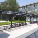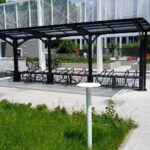 Saatavilla useissa RAL-väreissä, joten katos voidaan sovittaa täydellisesti ympäristöönsä – moderniin kaupunkikuvaan, yrityksen brändiväreihin tai taloyhtiön ilmeeseen.